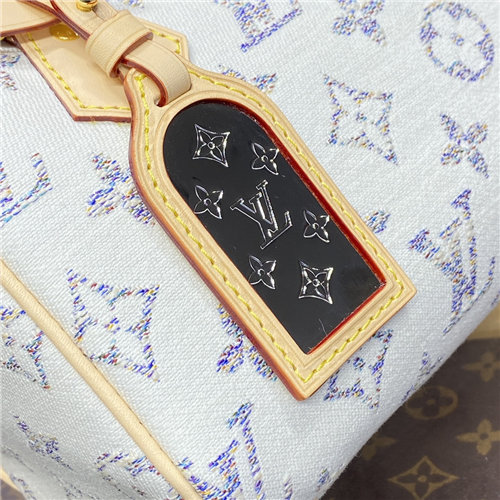 Made from Monogram jacquard fabric with a distinctive rendering of the Monogram motif, this Speedy Bandoulière 20 handbag is part of the Nautical capsule. To create this unique gradient of colors in the Monogram, 66 multicolored threads are woven together. To protect this playful motif, the fabric is coated in a invisible finish.
