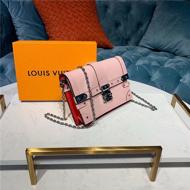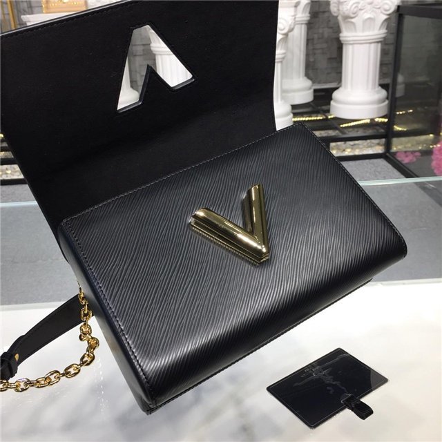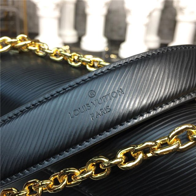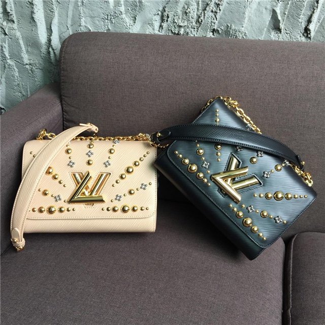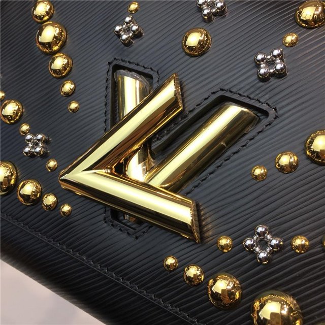 This refined Twist MM chain bag is embellished with a sunburst of engraved and flower shaped gold- and silver-tone studs, a nod to the colossal Sun sculpture that adorns the House flagship on Place Vend?me in Paris. Crafted from Epi leather, this precious piece is an ultimate touch of elegance for evening ensembles.