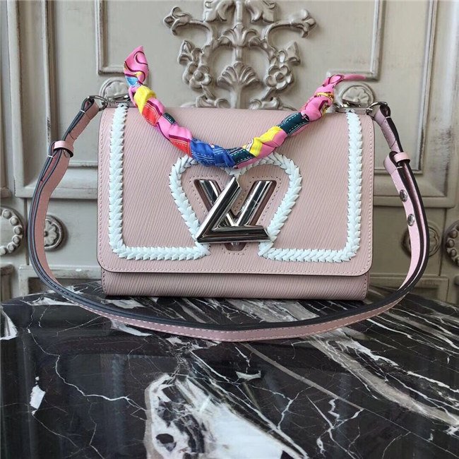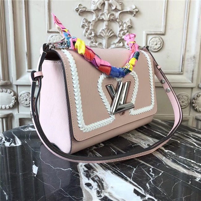 A graphic braided detail outlines the flap of this richly crafted Twist bag. New for Summer ’18, it is made of emblematic Epi leather, with a detachable strap that adjusts to several lengths. Carried by the short chain handle, it is perfect for evening wear.