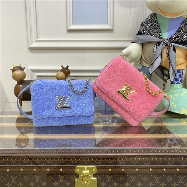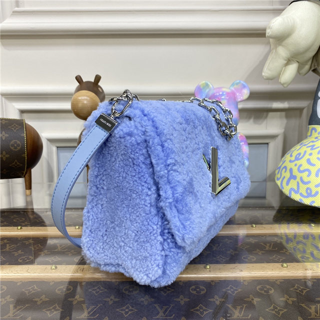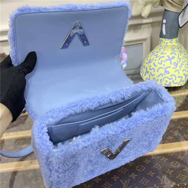 A fresh bright colorway brings an eye-catching aspect to this Twist MM hand bag in shearling. The bag is adorned with a removable silver-color double chain featuring an enamel Monogram Flower charm. The chain and leather strap are both removable to enable multiple attitudes and carry options.