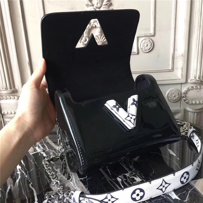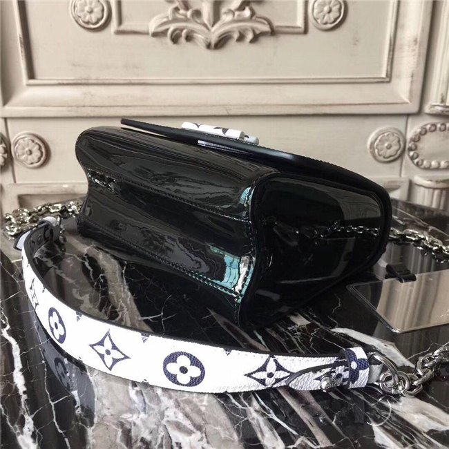 This season, the Twist has been reinterpreted in elegant smooth patent calfskin mixed with graphic & hypnotic Monogram colors lock, for a fashion-forward take on this leather. Perfect for a day-to-evening use, this Twist PM is a bold & cool addition to any silhouette.
