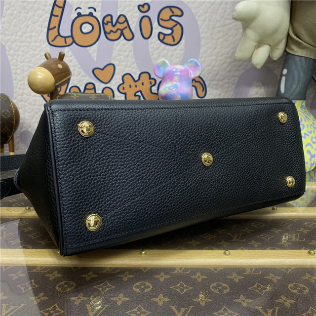 Sophisticated and functional, the Vend?me MM bag presents a refined mix of grained Taurillon leather and smooth calfskin, with gold-finish buckles and hardware. Emblematic House touches include a padlock, key bell and a hot-stamped Louis Vuitton signature. Fitted with articulated top handles and a detachable strap, the tote offers a variety of carry options.
