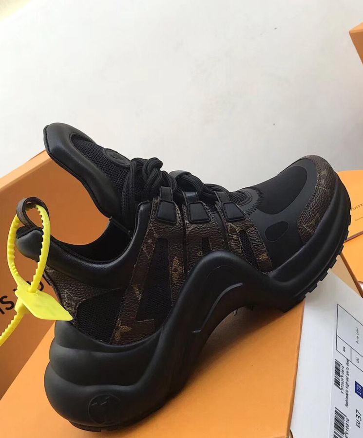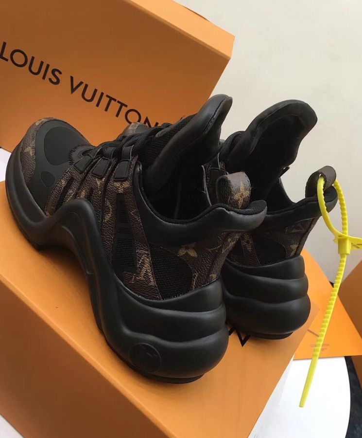 The statement look of Louis Vuittons Spring/Summer 2018 fashion show, this futuristic sneaker balances a springy wave-shaped outsole and an oversized tongue with a low cut around the ankle for a delicate, feminine touch.