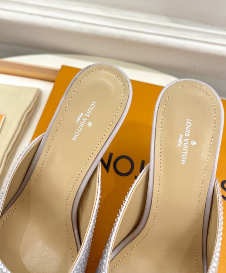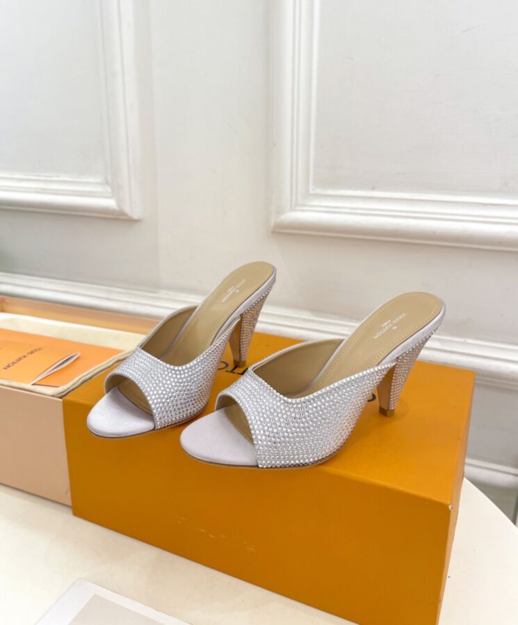 This precious version of the Super Mule is covered in sparkling rhinestones. They complement the minimalist, Nineties-inspired design of this ultra-feminine model, which is notable for its deep cut-out at the front and its high, cone-shaped heel. It is finished with a fine leather outsole.