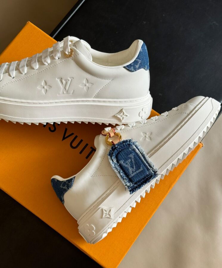 This edition of the Time Out sneaker comes in calf leather with details in Monogram denim, coordinating with the season’s leather goods. A denim luggage tag, which is attached to the upper by a natural leather strap, evokes Louis Vuitton’s travel heritage. Other refined details include engraved, gold-tone eyelets and the House signature embossed on the tongue.