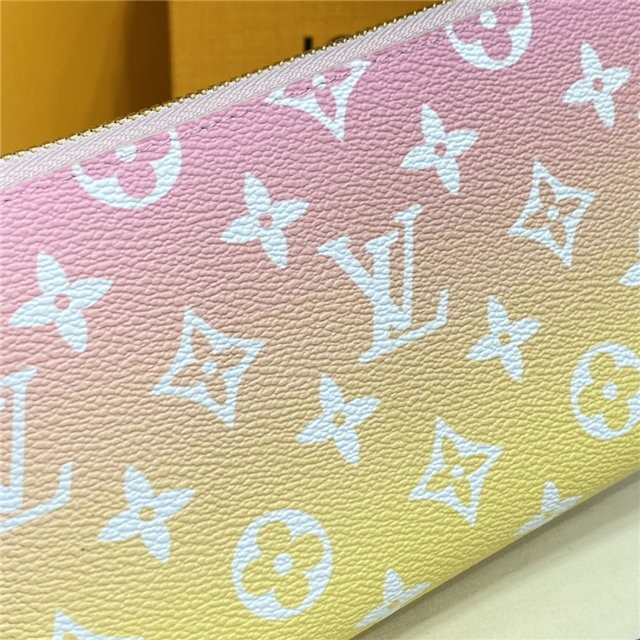 This special edition of Louis Vuitton”s emblematic Zippy wallet comes in Monogram canvas with a color gradation effect. It is part of the By The Pool capsule collection of accessories, leather goods and ready-to-wear for Summer 2021. This sleek wallet unzips to reveal a well-organized interior with ample space for cards, bills and coins.