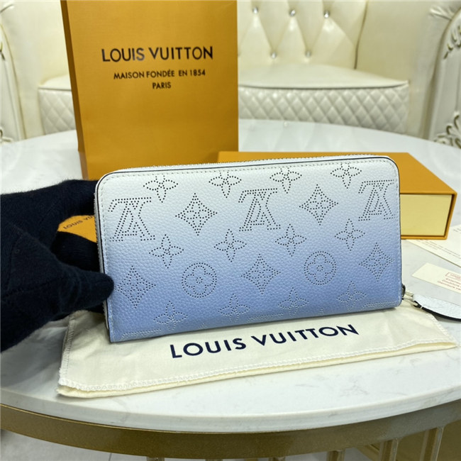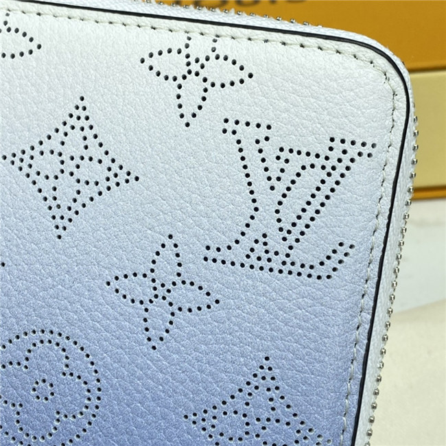 The Zippy wallet is revisited in soft Mahina calf leather with a perforated Monogram pattern and a delicate color gradation. A contrasting leather lining and silver-tone hardware add to the refinement of this design. This wallet is notable for its secure, all-round zip and well-designed interior with multiple pockets and card slots.