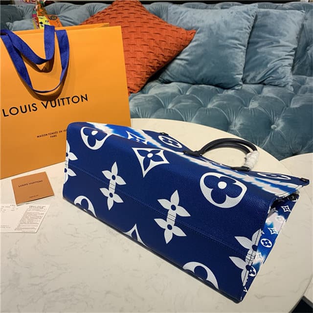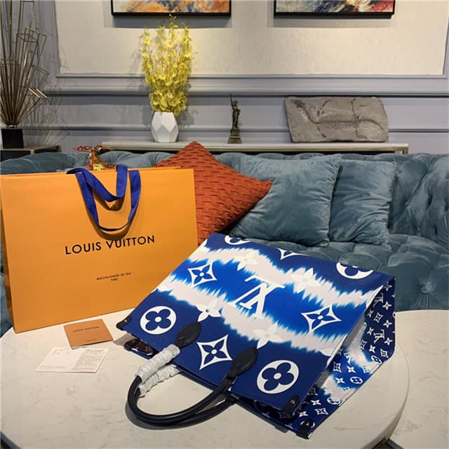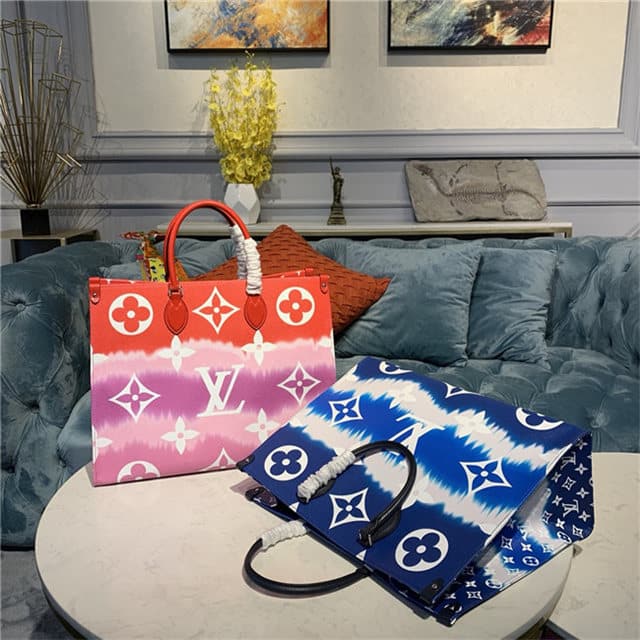 Inspired by the ancient Japanese Shibori technique of knotting and folding the fabric before dyeing it, the LV Escale Collection brings a fresh colorful beach feel to the Onthego GM tote bag for Summer 2020. Large and easy to carry with its shoulder straps or top handles, this large tote is a perfect everyday bag.
