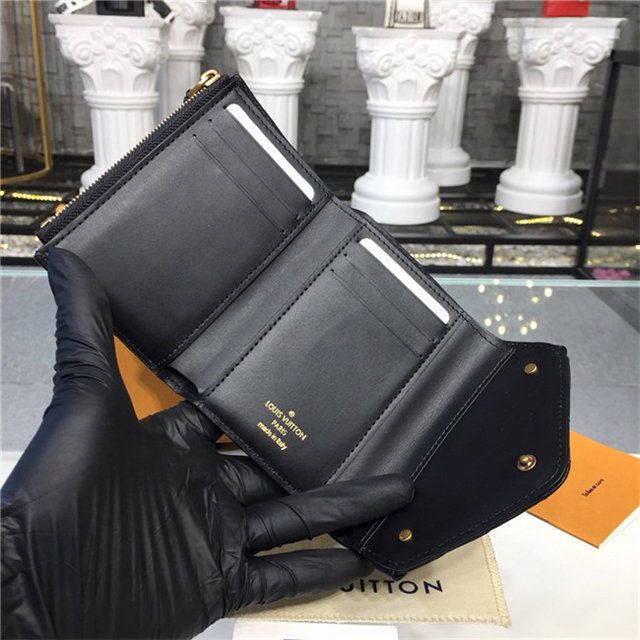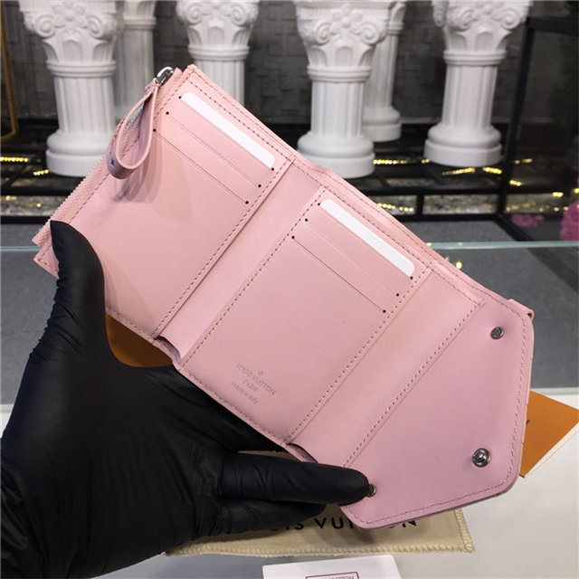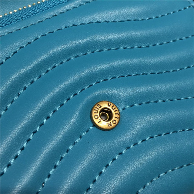 The New Wave compact wallet is crafted from exceptionally smooth, supple calf leather, which is quilted with a wave pattern inspired by a historic Louis Vuitton trunk. Lightweight and space-efficient, this envelope-style wallet offers a variety of pockets and credit-card slots. The flap is signed with an iconic LV Initials accessory.