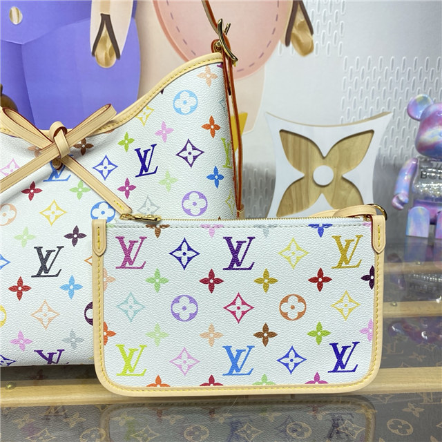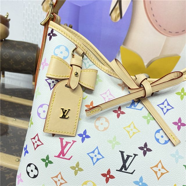 Joyful details uplift the classic CarryAll PM handbag with a playful spirit as part of the re-edition of the Louis Vuitton x Murakami collection. The body-friendly design is crafted from Monogram coated canvas that has been vibrantly reimagined in the Japanese artist’s signature palette, while the House’s emblematic natural cowhide leather frames the silhouette and the name tag is adorned with a chic bow detail.