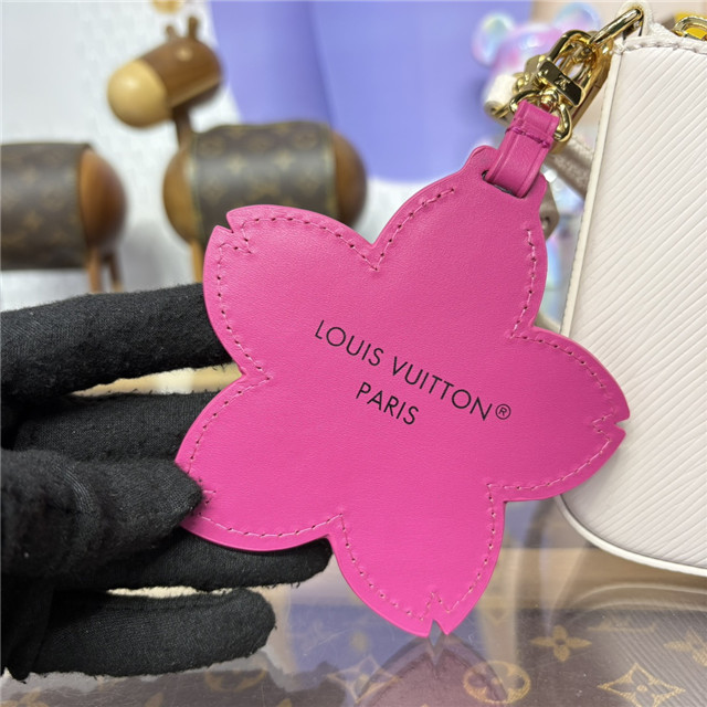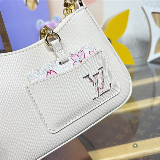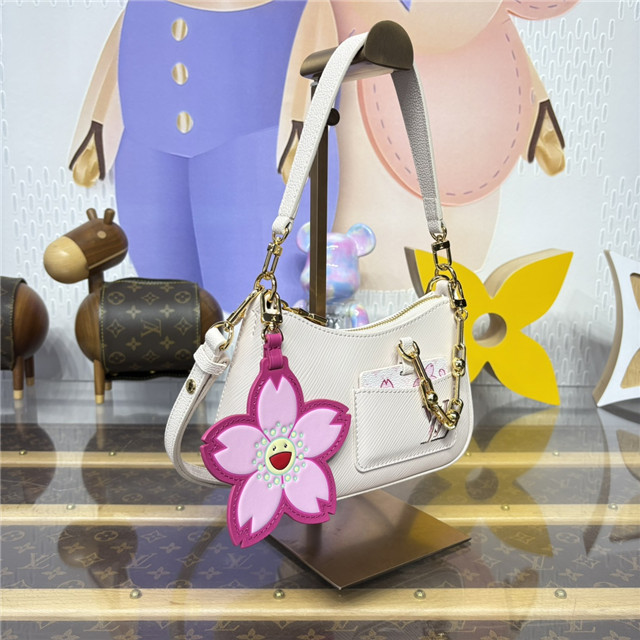 The Marellini handbag is refreshed with playful signatures from the re-edition of the Louis Vuitton x Marakami collection. Crafted from the House’s signature Epi grained leather, the Cheeky Pink colorway is uplifted with gleaming golden hardware, while the removable mirror strikes a contrast in Monogram canvas detailed with Cherry Blossom motifs. A coordinating Cherry Blossom bag charm completes the look with a final seasonal statement.
