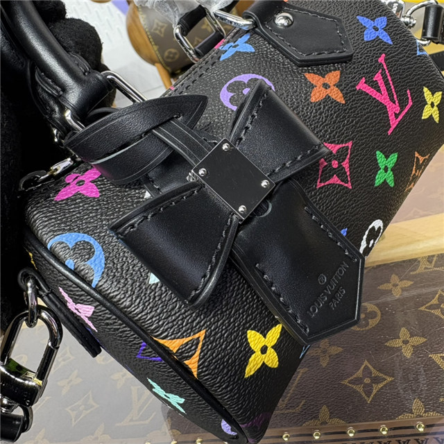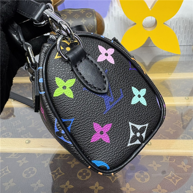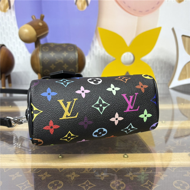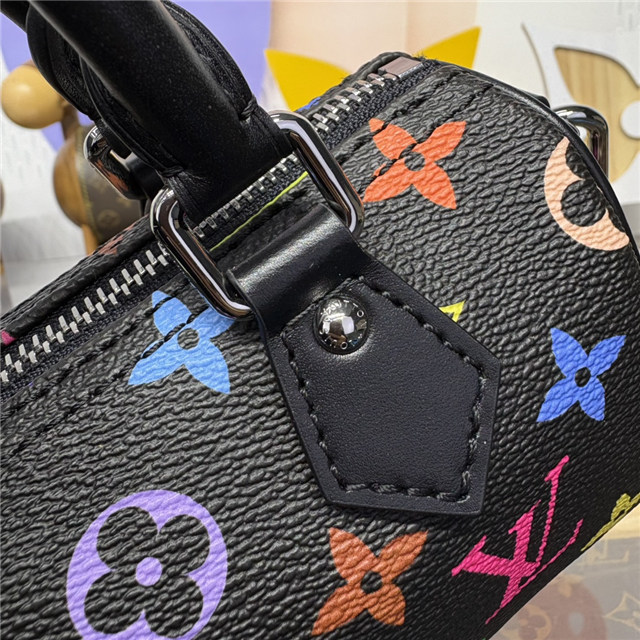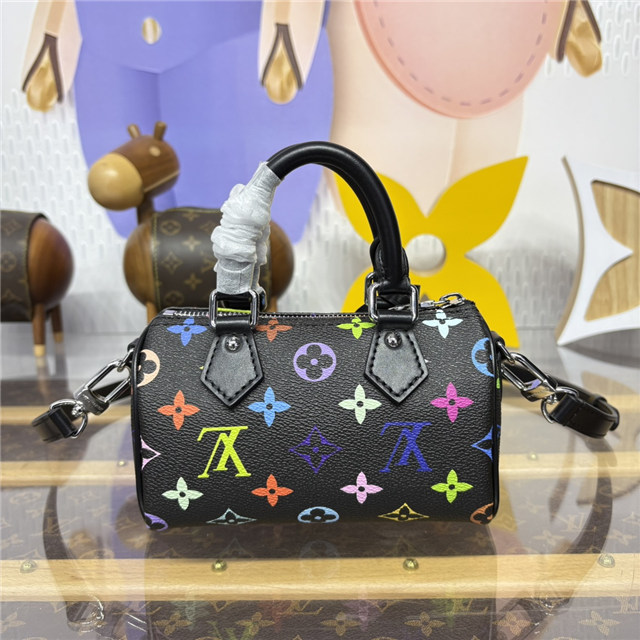 The scaled-down Nano Speedy makes a playful statement in Monogram coated canvas, which has been reworked in upbeat tones as part of the re-edition of the Louis Vuitton x Murakami collection. Natural cowhide leather trims add a timeless touch, as do two Toron top handles and a gleaming golden padlock in homage to the House’s travel heritage. Complete with a removable, adjustable strap and an exclusive LV x TM keybell.
