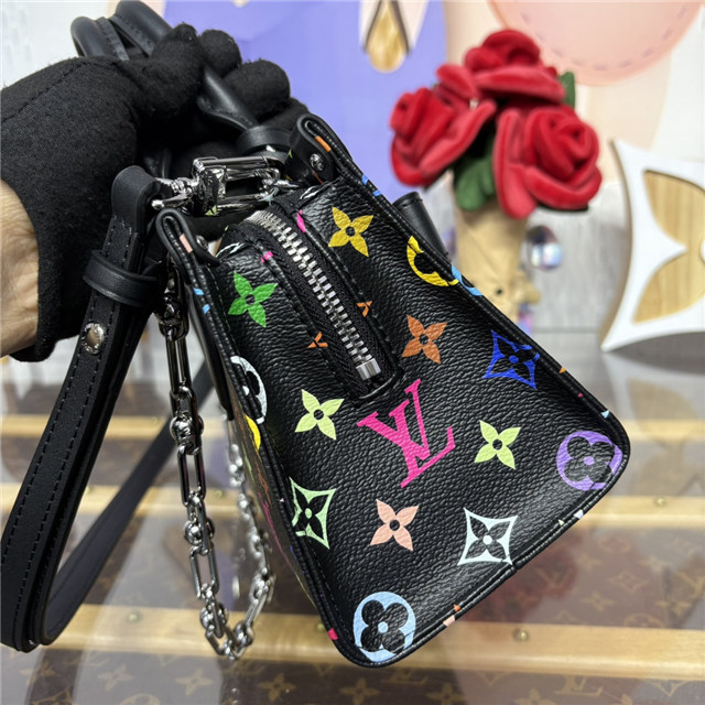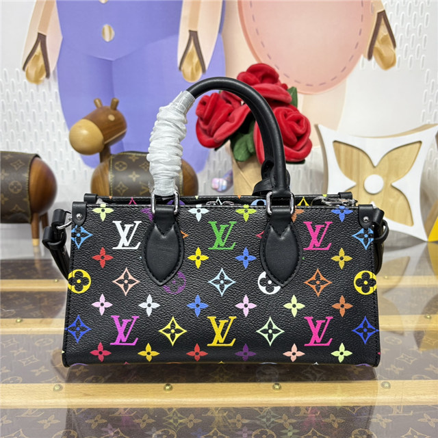 The sleek OnTheGo East West handbag catches the eye in coated canvas featuring a vibrant allover print of the Monogram motif, which has been refreshed with the Louis Vuitton x Murakami collection”s playful rainbow palette. It can be worn multiple ways thanks to two refined Toron top handles in calf leather, a cool silver-toned crossbody chain and an adjustable leather strap, while the inside is large enough to fit daily essentials, including a smartphone.