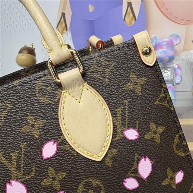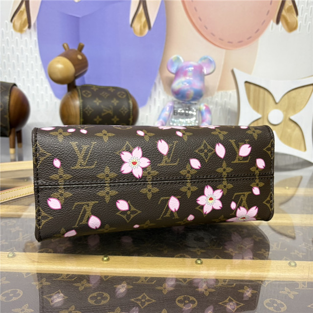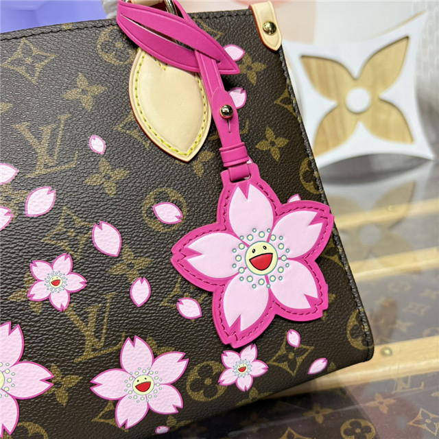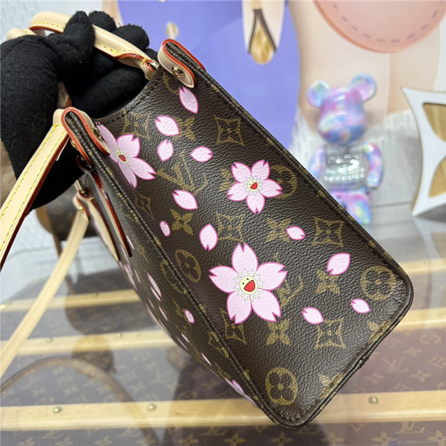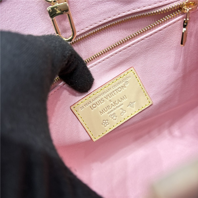 This timeless OnTheGo PM handbag is playfully refreshed with statement Cherry Blossom motifs from the exclusive re-edition of the Louis Vuitton x Murakami collection. Symbolizing renewal, the Japanese artist’s vibrant floral motifs are printed over the House’s iconic Monogram coated canvas, while natural cowhide leather trims and golden hardware complete the look. A removable Cherry Blossom charm adds a final seasonal flourish.