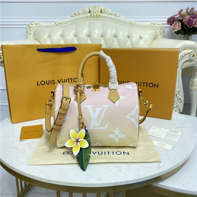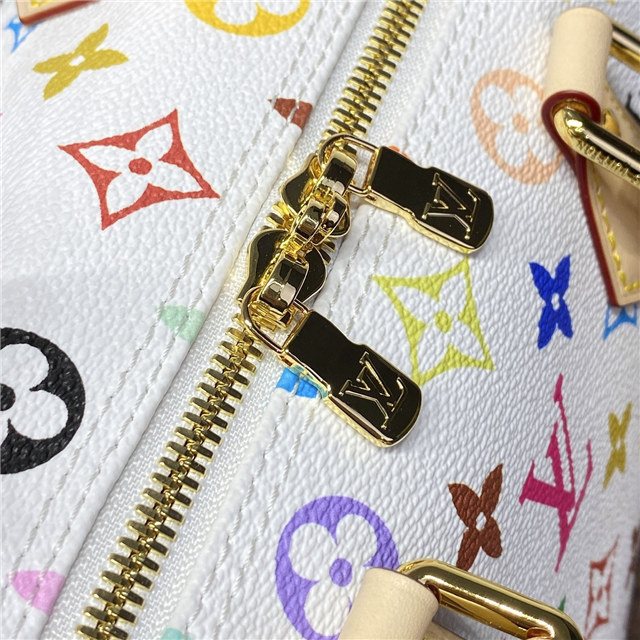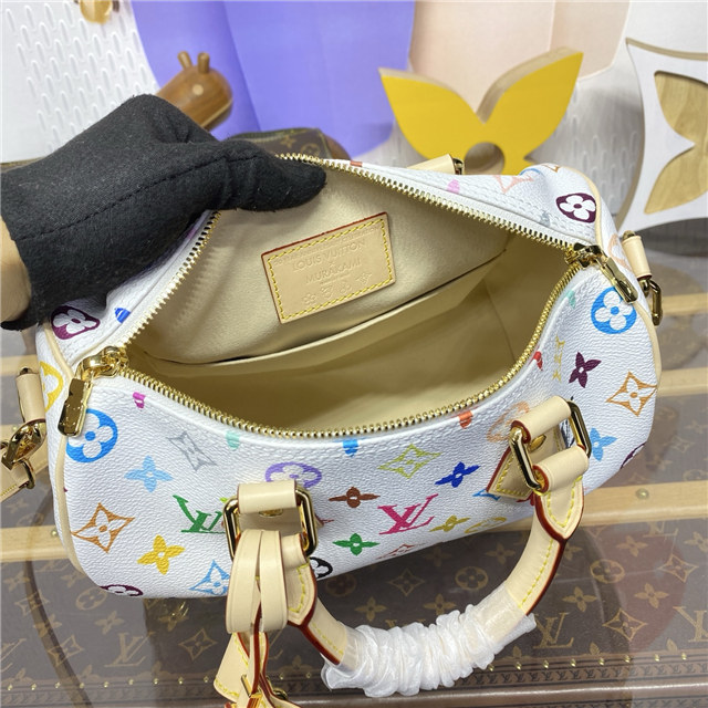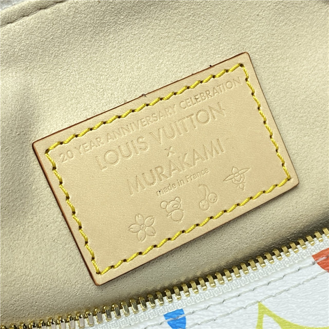 The Speedy Bandoulière 25 handbag makes a spirited statement in the Louis Vuitton x Murakami collection”s vibrant version of the iconic Monogram motif, which is refreshed with the Japanese artist’s signature pop-colored palette. This classic design is detailed with two Toron top handles and a removable strap in natural cowhide leather, as well as a playful bow-shaped LV x TM keybell. A golden padlock and corner details nod to the House’s emblematic travel trunks.