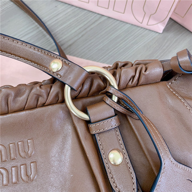 The style of this Joie nappa leather bag recovered from Miu Miu archives has been updated in terms of structure, which is light, casual and compact, and attitude, creating a classic bag with timeless charm. The embossed lettering logo completes the design with an iconic note.