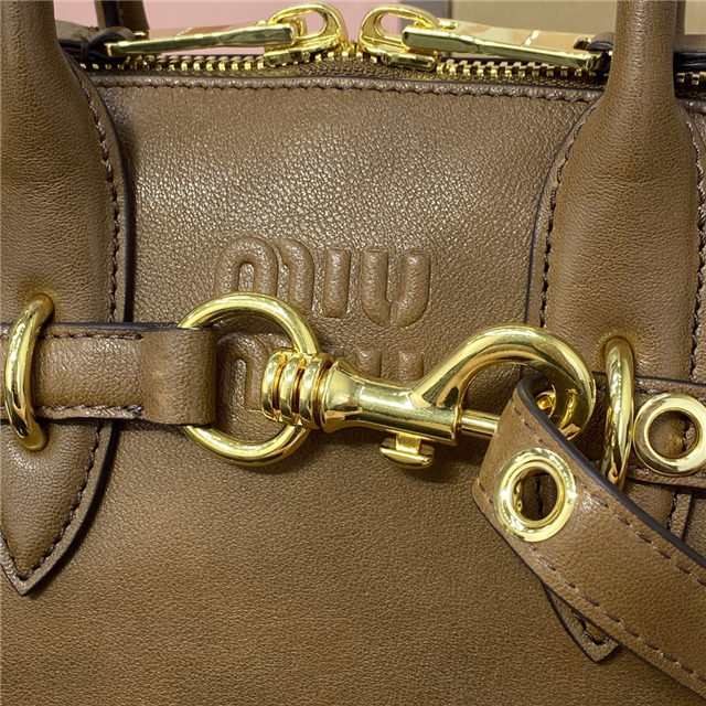 The Aventure top-handle bag, recovered from the Miu Miu archives, has been reinterpreted in terms of a lighter structure and attitude, creating a classic style with timeless charm. The embossed lettering logo completes the design with an iconic note.