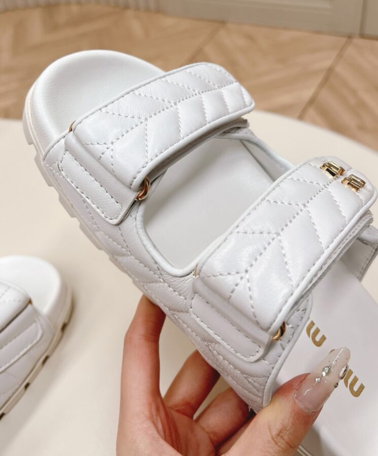 Fine matelasse workmanship creates a refined, textured, three-dimensional effect on these sporty nappa leather slides. The metal lettering logo stands out on the matelasse motif thanks to its contrast in color and texture, giving the sandal an iconic note.