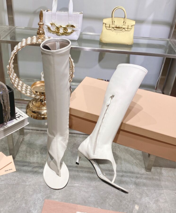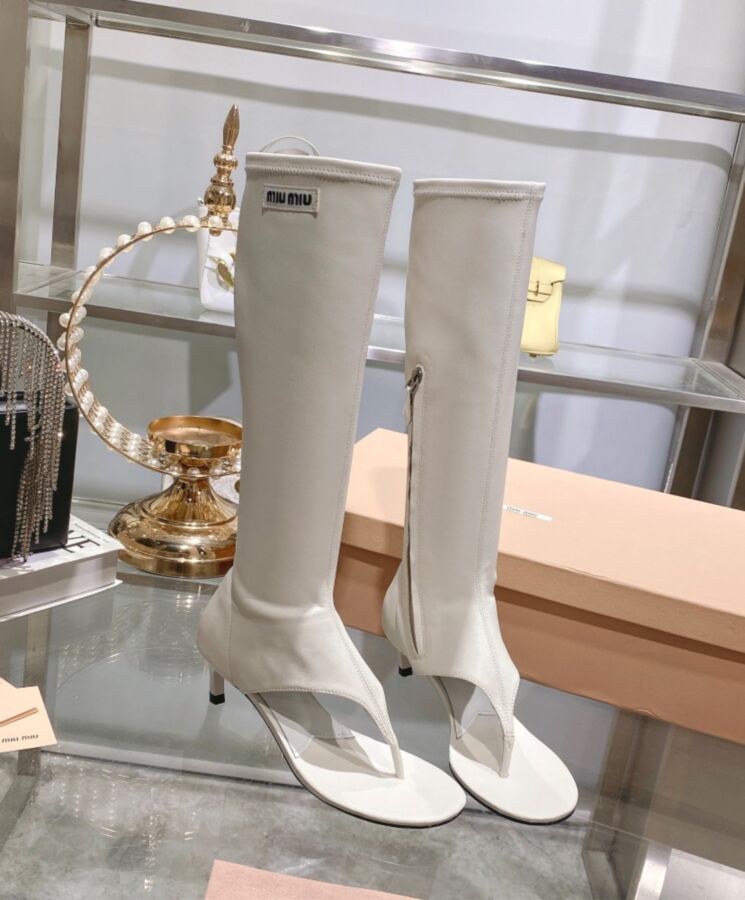 Captivating, feminine, and sophisticated: these stretch nappa thong boots are characterized by their cosmopolitan and extremely contemporary style. The encounter between two types of footwear accompanies the original design while the logo label decorates this new fashion statement.