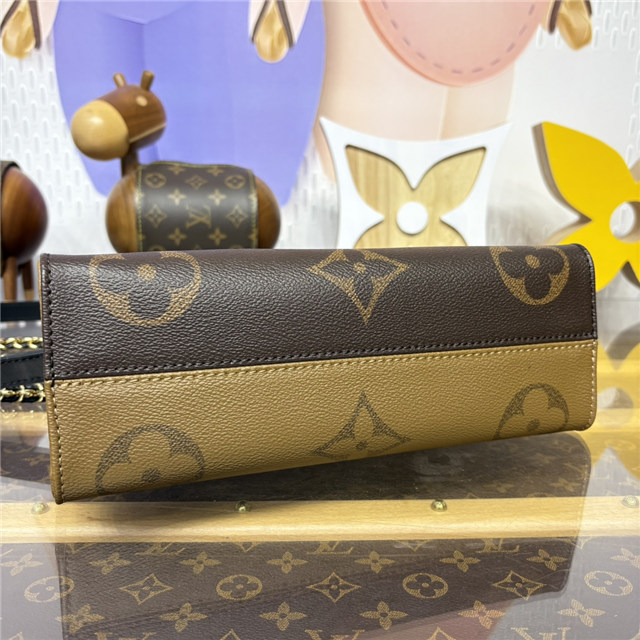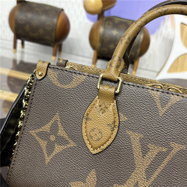 Showcasing the House’s Monogram Giant signature, this OnTheGo East West is a sophisticated everyday choice. Crafted from coated canvas, it is accented with Monogram Reverse coated canvas trims and gold-toned hardware. Fitted with two handles, a removable and adjustable strap, and a removable chain, the versatile design can be worn in a variety of ways and includes multiple compartments and pockets to keep valuables organized.