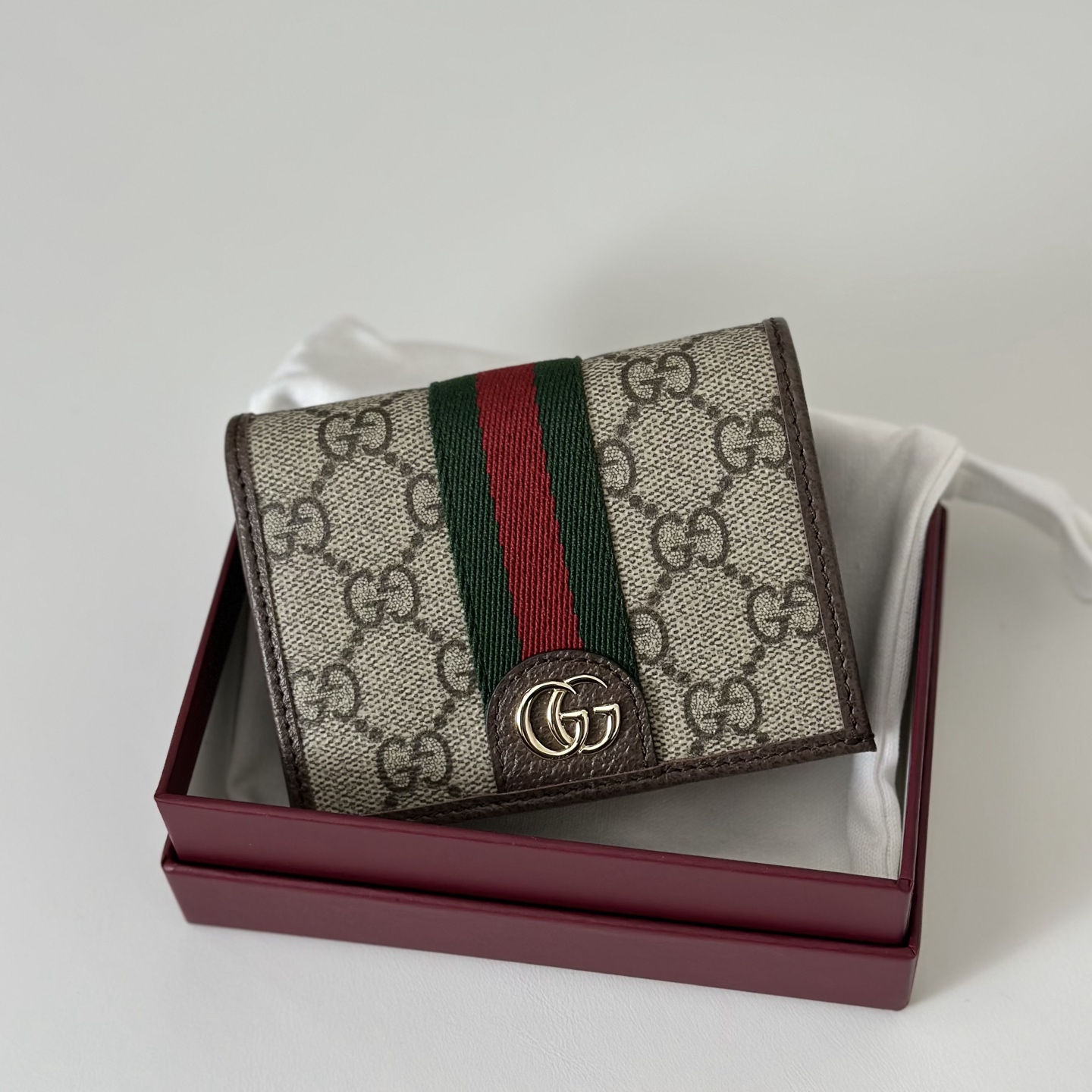 The Ophidia collection evokes the House’s heritage with the signature Web stripe and Double G emblem in light gold-toned finish.