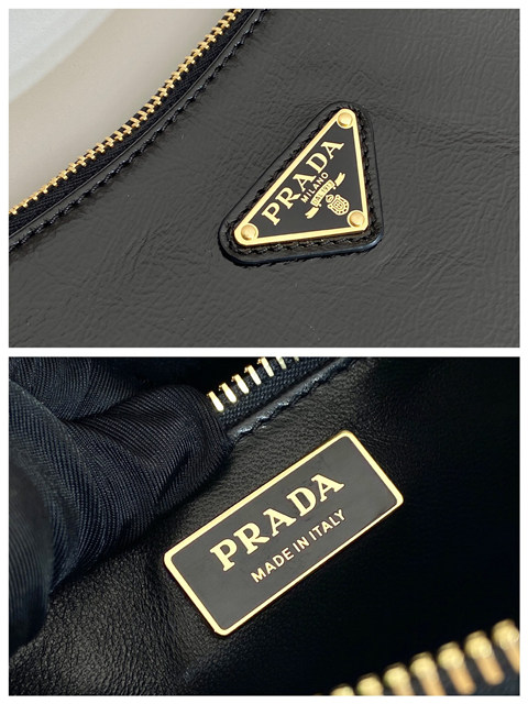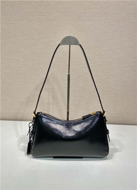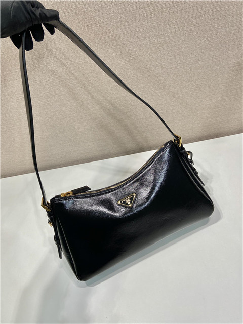 Prada Aimee Medium Leather Shoulder Bag 1BC229 Black Patent