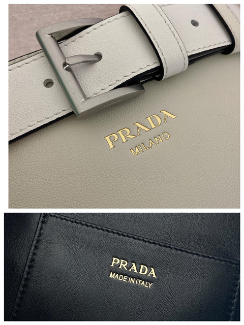 The sophisticated and modern essence of the Prada Buckle bag is rediscovered in a new bucket silhouette with a sleek shape. The belt with iconic buckle enhances the versatile and contemporary design.