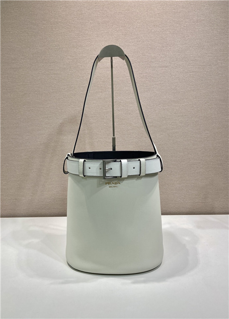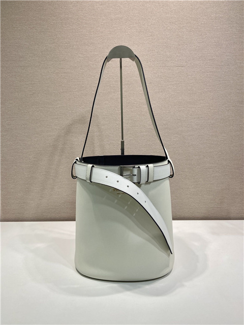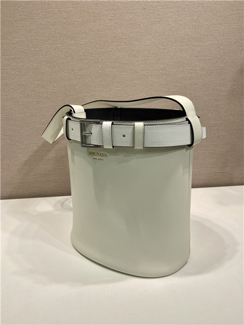 Prada Buckle Leather Bucket Bag With Belt 1BE085 White