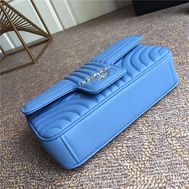 Prada Diagramme bag in refined matelasse leather. The chain shoulder strap, logo lettering and hardware add a touch of light to the model.