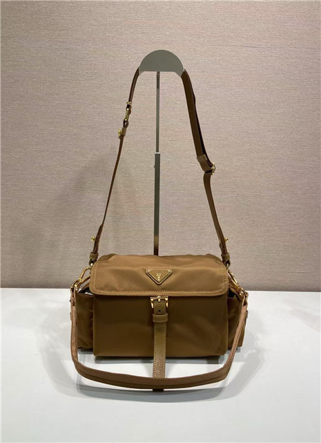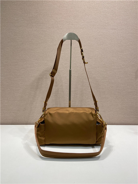This bag, a perfect synthesis of refinement and functionality, is made of Re-Nylon with a soft silhouette and multiple pockets. The light, pragmatic design is defined by the combination of sporty and versatile elements with iconic and timeless touches. The accessory completed with leather details is decorated with the enameled metal triangle logo.