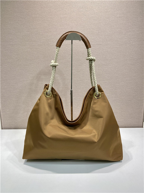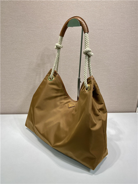 Original combinations animate this Re-Nylon bag inspired by the timeless codes of nautical style. The sliding cord handles define the versatile accessory with an oversized silhouette, completed by the enameled metal triangle logo.