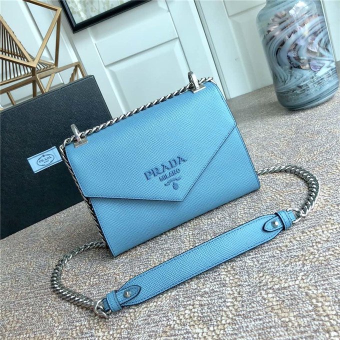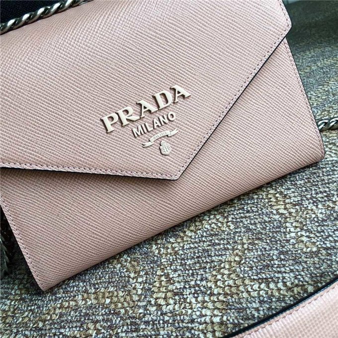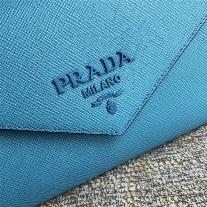 Sleek sophisticated design is the choice for the Prada Monochrome bag in Saffiano leather. The bag has a distinctive tonal metal logo.