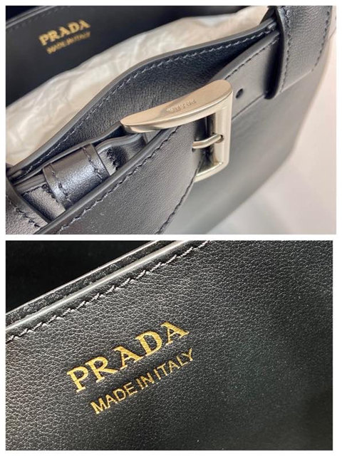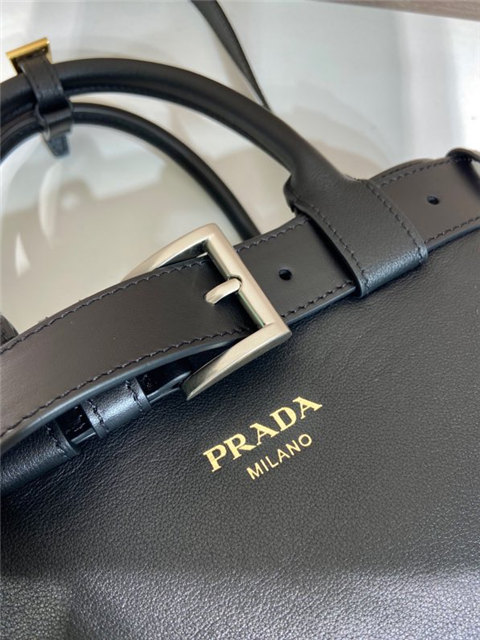 Prada Prada Buckle Medium Leather Handbag With Belt 1BA434 Black