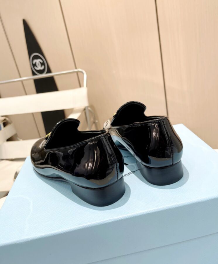 Prada Womens Patent Leather Loafers 1S365N Black