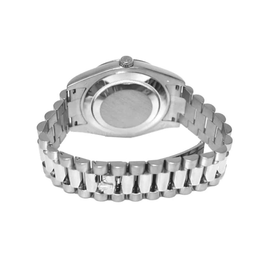 The Rolex Day-Date II 218239 V6 Stainless Steel White Dial Replica is a stunning watch. It features a 904L stainless steel case and bezel, with a sapphire crystal and adjustable links for all sizes. The white dial is adorned with Roman numerals and 904L stainless steel stick hands. The movement is an automatic 3156 caliber with a 60-hour power reserve and precision within COSC certification limits. It is a 1:1 super clone Swiss mechanism watch, with the same serial numbers and cards, font, punto, and finishing for writings and markings, thickness, size, and powerful movement and caliber as the authentic watch. Your jeweler won’t be able to tell the difference!
