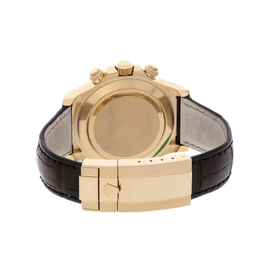 This Rolex Daytona Cosmograph 116515LNBR Rose Gold Black Dial Replica is a stunning watch. It features a 904L stainless steel case with a rose gold color and a black bezel. The sapphire crystal is 40.00 mm in size and 13.00 mm in thickness. The crocodile skin bracelet is adjustable and features a double-fold clasp in rose gold. The brown dial has Arabic numerals and 904L stainless steel hour markers and hands. The movement is an automatic Rolex 4030 with a power reserve of 60 hours and a precision of (-3/+3 sec/day) within COSC certification limits. This watch is a perfect replica of the original, with the same serial numbers, writings, markings, thickness, size, and movement. It is truly a work of art.