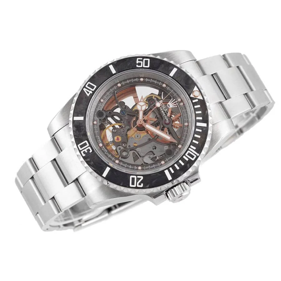 Immerse yourself in the world of timeless elegance with the Rolex Oyster Perpetual 114200 Skeleton Dial Replica. This luxurious timepiece encapsulates both precision and style, emblematic of the revered Rolex brand. The 904L stainless steel case and bezel encircle a stunning skeleton dial, providing a window into the intricate artistry and craftsmanship that lies beneath. The sapphire crystal offers a shield of resilience, keeping the flawless face of this watch pristine and clear. This is more than just a timepiece; it is a statement of sophistication, engineered for those who appreciate the finer things in life. The standout feature of the watch is its skeleton dial, a unique design that allows you to witness the watch’s inner workings in action. Complimenting this artistic display are the stick and number indices, alongside 904L stainless steel hour markers and hands, ensuring you can tell the time with just a glance. Powered by an automatic Rolex 3130 caliber, this watch offers a 60-hour power reserve, providing both reliability and convenience. Precision is key with any luxury watch, and this model does not disappoint, maintaining accuracy within COSC certification limits. The adjustable 904L stainless steel Oyster bracelet and fold clasp ensure both security and comfort, sitting snugly and elegantly on the wrist. Engineered to handle life’s little surprises, it is water-resistant up to 30 meters, offering peace of mind whether you’re in the boardroom or at the beach. This replica is a perfect 1:1 super clone with Swiss mechanism, mirroring the original Rolex down to the finest detail; from the serial numbers to the fonts, and the exact thickness, size, and movement. The meticulous craftsmanship means that even your jeweler won’t be able to tell the difference. For those who prefer Japanese mechanism watches, rest assured that the materials and movements, while slightly different, are still of prestigious quality matching the exquisite design of the original. When you invest in the Rolex Oyster Perpetual 114200 Skeleton Dial Replica, you are not just purchasing a watch; you are acquiring a symbol of prestige and an emblem of refined taste. This is the perfect product for those who seek the pinnacle of luxury without compromise. Be it for your collection or as a show-stopping accessory in social events, this Rolex dupe watches stands as the unparalleled choice for the discerning connoisseur.