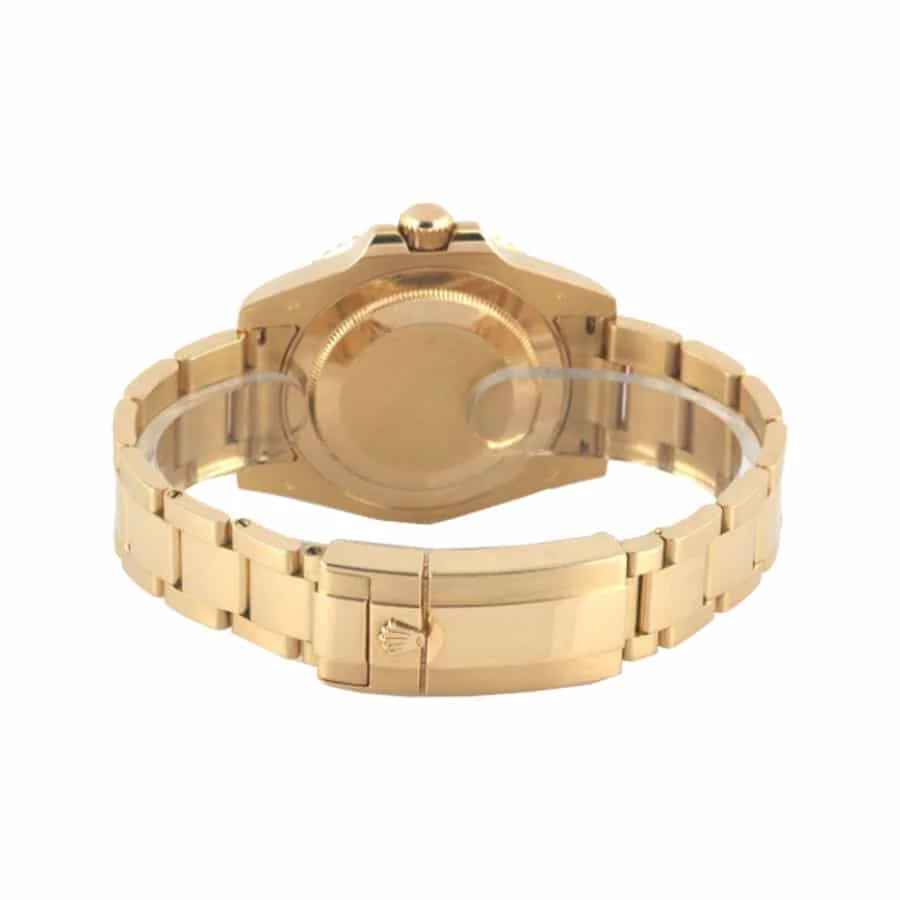 This Rolex GMT-Master II 116718LN Gold Watch Black Dial Oyster Replica is a stunning watch. It features a 904L stainless steel case with a black bezel and sapphire crystal. The movement is an automatic caliber 3186 with a power reserve of 60 hours and a precision of (-3/+3 sec/day) within COSC certification limits. The bracelet is also 904L stainless steel with an adjustable link and a fold clasp. The dial is black with stick and dot indices and ceramic stick hands. It has a 24 hour hand and a date function. This watch is a perfect replica of the original, with the same size, thickness, markings, and powerful movement. It is sure to make a statement on any wrist.