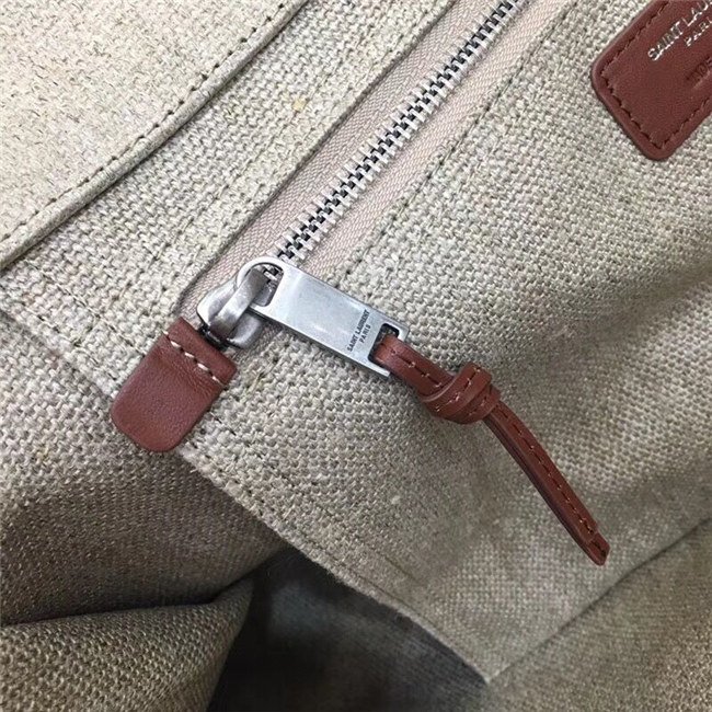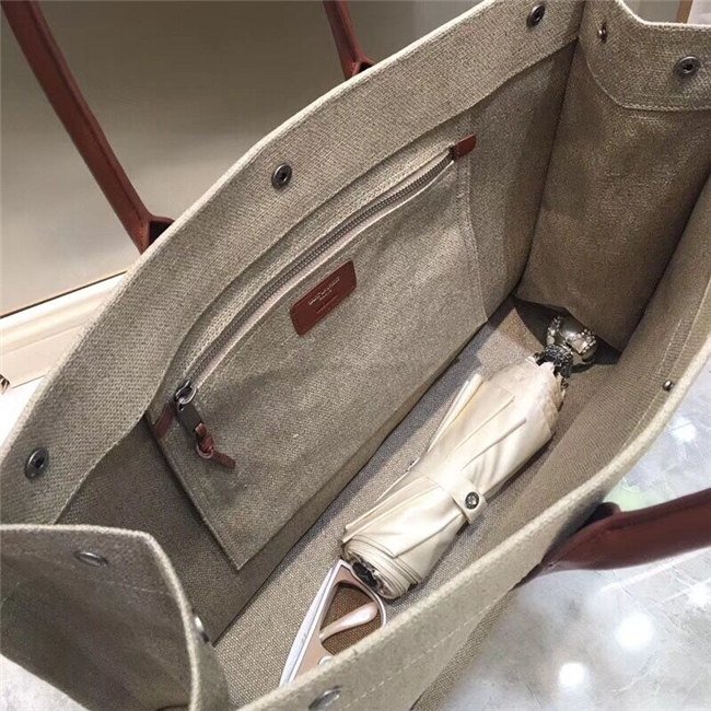 Rive Gauche Tote Bag In Beige Linen And Cogeac Leather