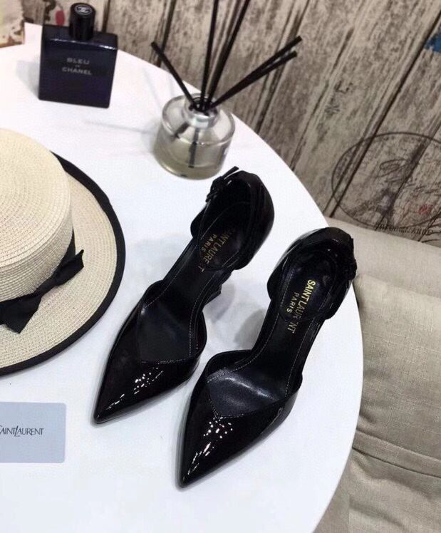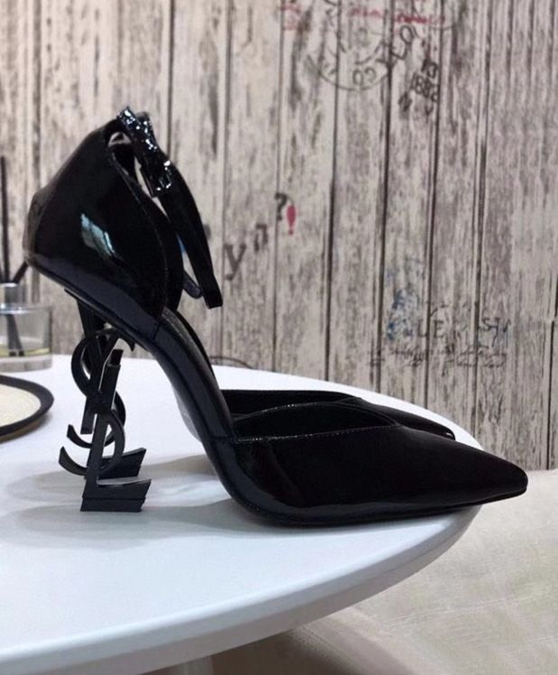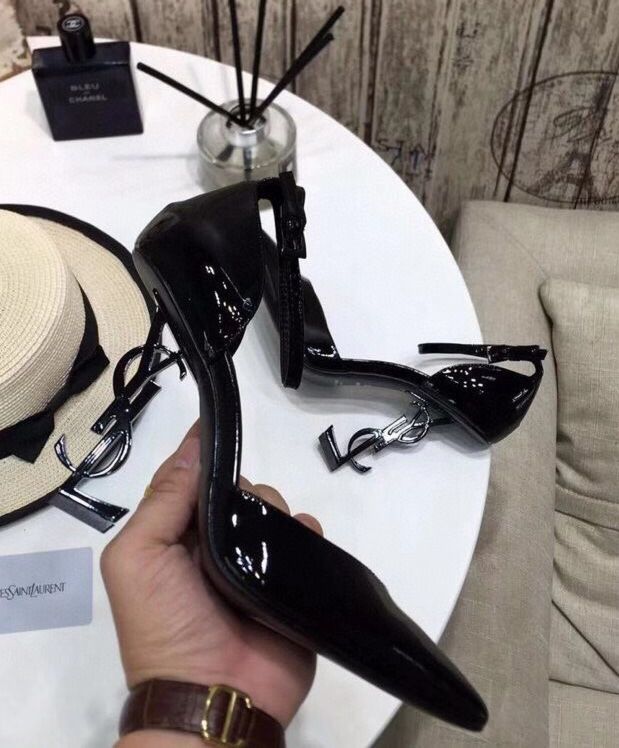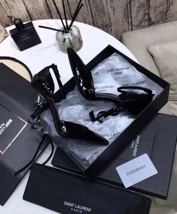 Saint Laurent Womens Opyum Dorsay Pumps In Patent Leather With Black Heel Black