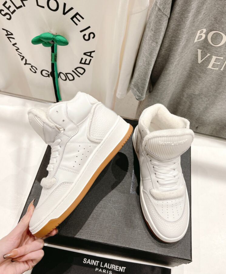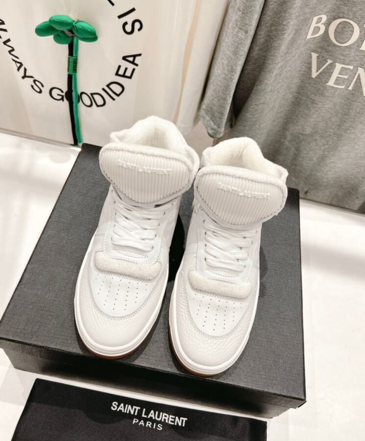Mid-Top Laced Sneakers Featuring Perforated Leather On The Front, An Sl 80-Embossed Pull Tab And a Saint Laurent Inscription On The Side. 100% Calfskin Leather Rubber Sole
