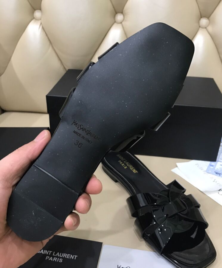 Slide Sandals In Patent Leather With Intertwining Straps. We Recommend Selecting Half Size Bigger Than Your Usual Size. 100% Calfskin Leather Total Heel Height: 0,5 Cm / 0.2 Inches Leather Sole
