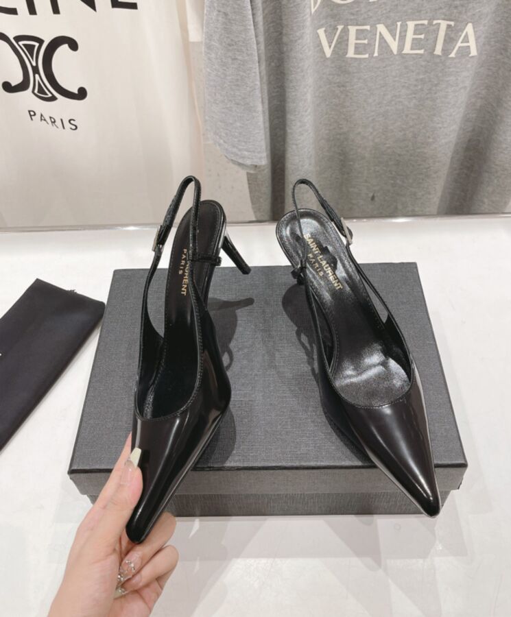 Slingback Pumps With a Pointed Toe, Stiletto Heel And Adjustable Slingback Strap. Leather Sole Adjustable Slingback Strap Total Heel Height: 7 Cm / 2.7 Inches 100% Calfskin Leather