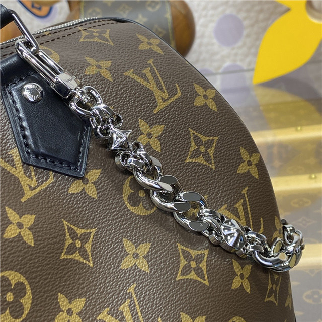 Designed to stand out, the Speedy Soft 30 Dark is the perfect travel companion. It is made from the House’s iconic Monogram coated canvas trimmed with black leather and finished with a bold, gothic-inspired chain. The chic and capacious design also features a name tag and tassel, and has an internal zipped pocket to safely store a passport and other important items. The new shoulder Toron handle adds the final flourish.