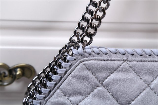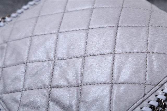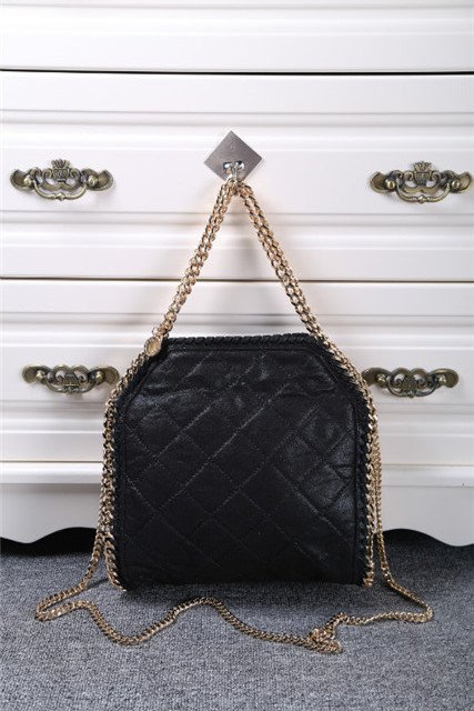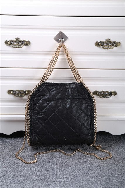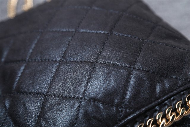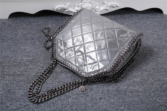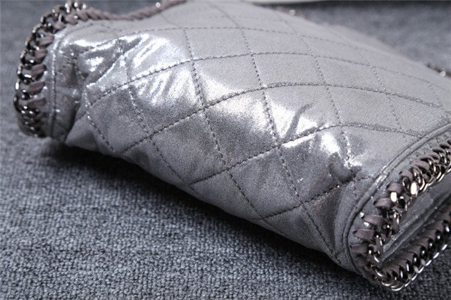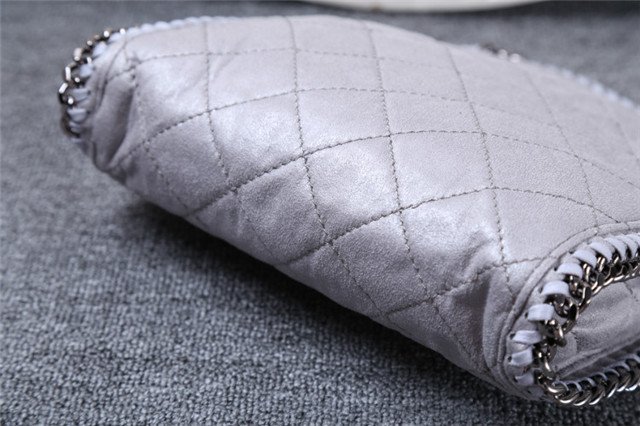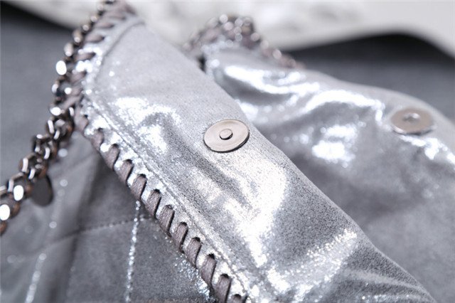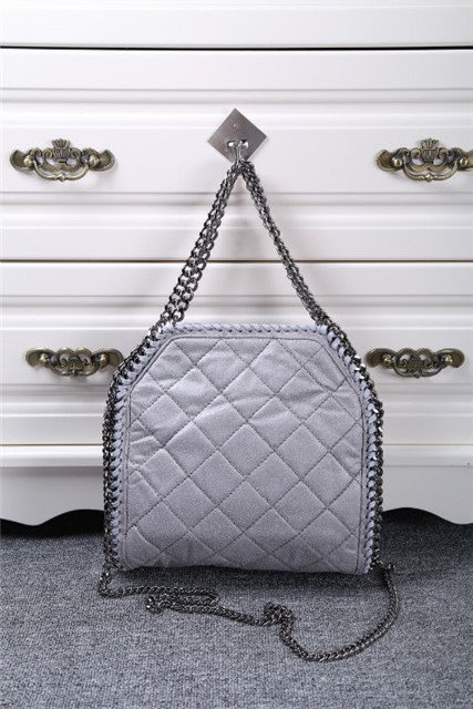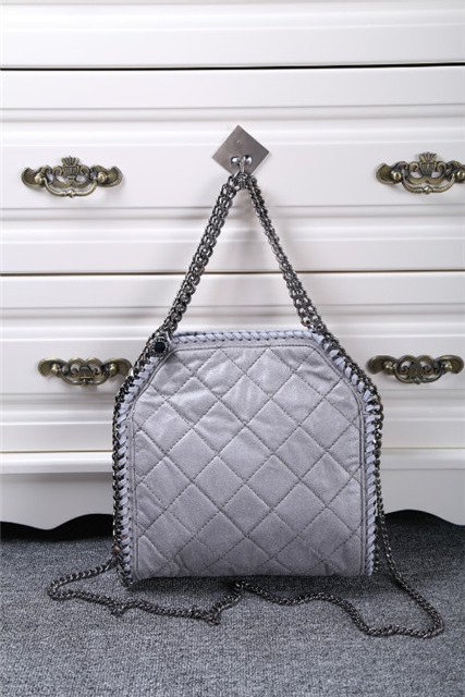Falabella shaggy deer quilited mini tote bag featuring a ruthenium diamond cut chain trim and handles. Compact shape with flap front closure and Stella McCartney logo disc.