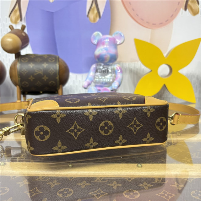 The Trocadéro Wearable Wallet in Monogram canvas with aged cowhide-leather piping and reinforced front corners pays homage to Louis Vuitton”s storied past, blending vintage charm with modern sophistication. Inspired by small House’s cross-body bags from the 1980s, this wearable wallet features a removable and adjustable shoulder strap.