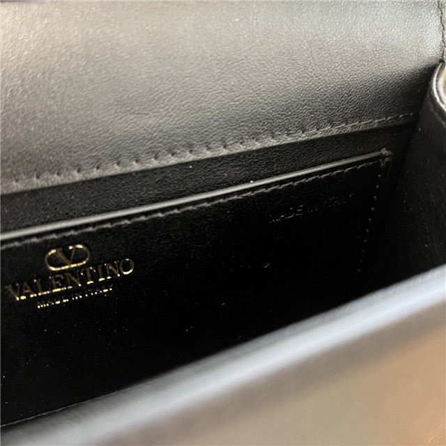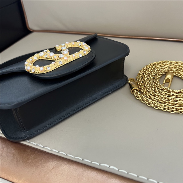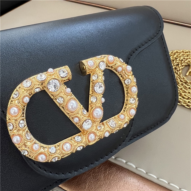 Valentino Garavani Locò small calfskin shoulder bag with VLogo Signature jewel element. Equipped with both a detachable sliding chain and a detachable handle, this accessory can be worn as a crossbody/shoulder bag or carried as a handbag.