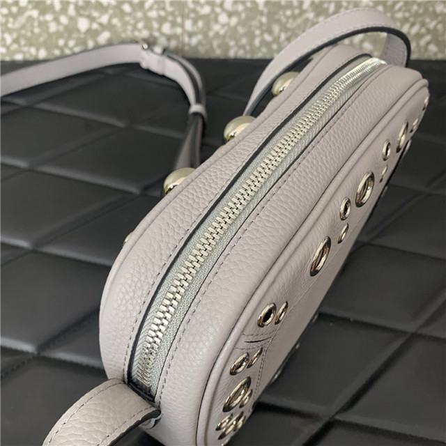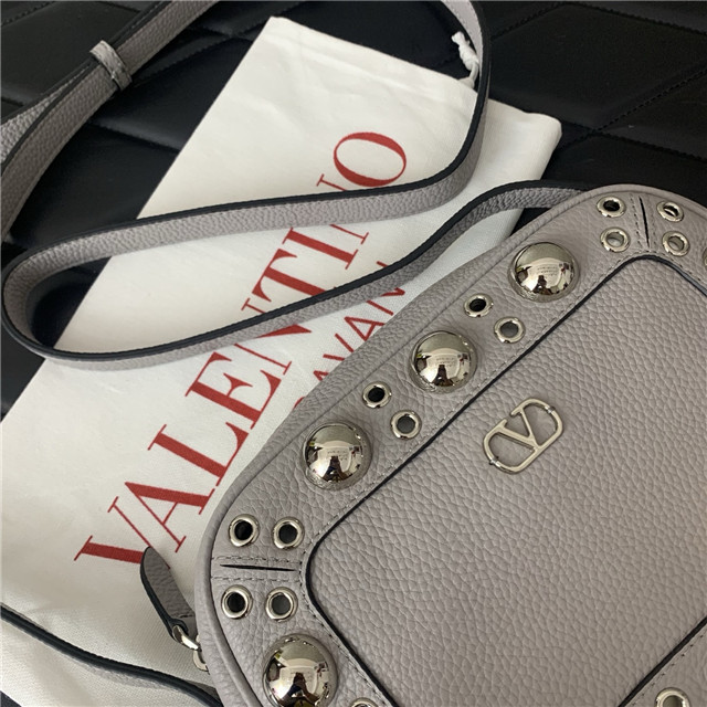 Valentino Garavani Nellcote crossbody bag in grainy calfskin and trim decorated with ball studs and rivets. The bag can be worn on the shoulder/cross-body thanks to the adjustable leather shoulder strap.