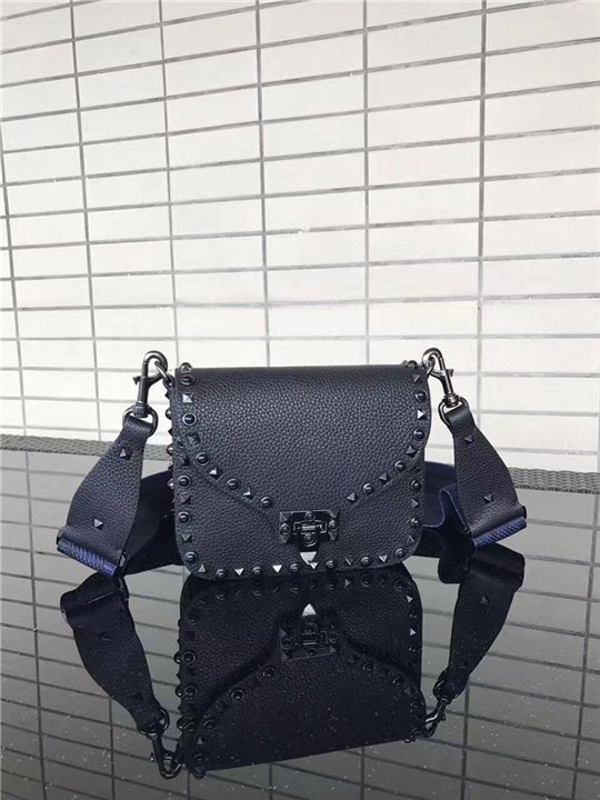 Valentino Garavani Guitar Rockstud Rolling Noir cross body bag in Textured calfskin