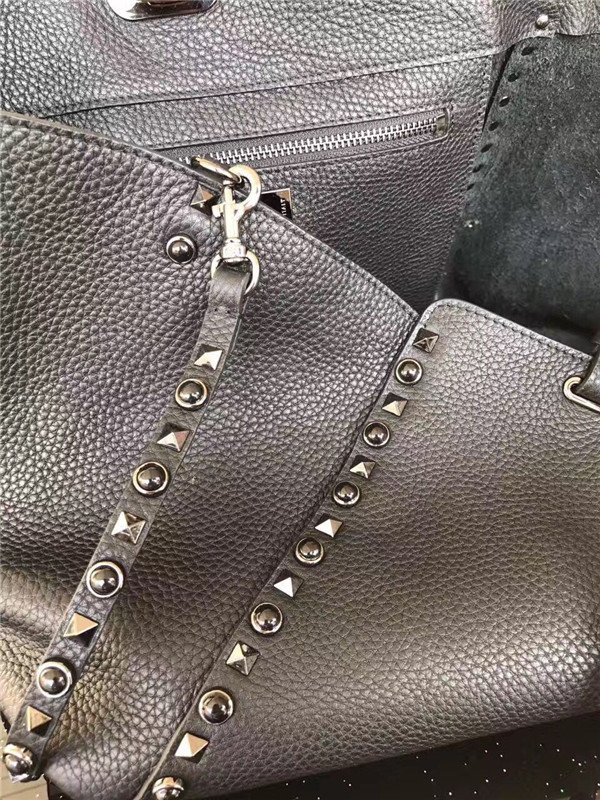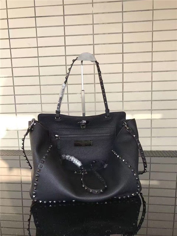 Valentino Garavani Rockstud Rolling medium tote in black Stampa Alce calfskin